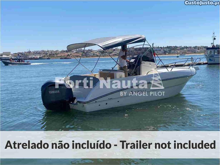 Com casco em fibra de vidro, 7,35 metros de comprimento total e 2,5 m de boca, oferece grande estabilidade e espaço de circulação a bordo. O depósito de combustível de 300 L e o de água de 70 L garantem autonomia para dias inteiros no mar, sem stress.
