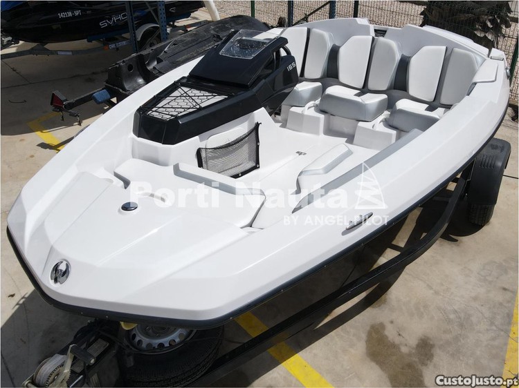Tem apenas 27 horas de uso, o que significa que ainda está a aquecer para as verdadeiras aventuras. Equipado com um potente motor Rotax 4-TEC de 150 HP, 4 tempos, com injeção eletrónica, é capaz de levantar ondas e acelerar os batimentos cardíacos de quem vai a bordo. E atenção: isto não é um motor fora de borda é um jet drive integrado, o que dá mais espaço útil e menos confusão lá atrás.