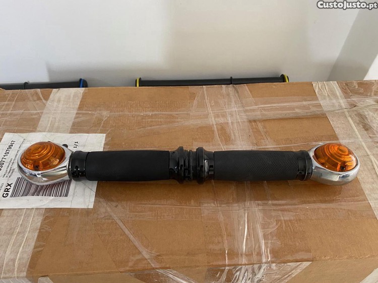 Punhos com piscas para guiador, usados em bom estado. Estavam montados numa Harley Softail Springer, mas servem em outras marcas. Valor total.