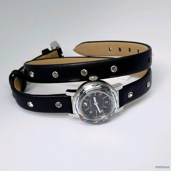 Este elegante e glamouroso Relógio de Pulso para Senhora, original da famosa e conceituadíssima marca austríaca Swarovski, impressiona e marca a diferença com a sua dupla bracelete ajustável em pele genuína com 18 magníficos rebites de cristal.