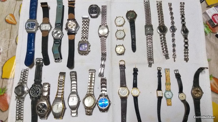 Relógios individuais ou lote completo Valores a partir de 3 euros no caso de levar o lote completo, bom preço se conhece a plataforma VINTED...também os tenho lá anunciados e até ao final deste mês não paga os portes de envio. É gratuito Só envio á cobrança, excepto portes pagos antecipadamente. Os portes são a cargo do comprador. A encomenda só será enviada após pagamento verificado