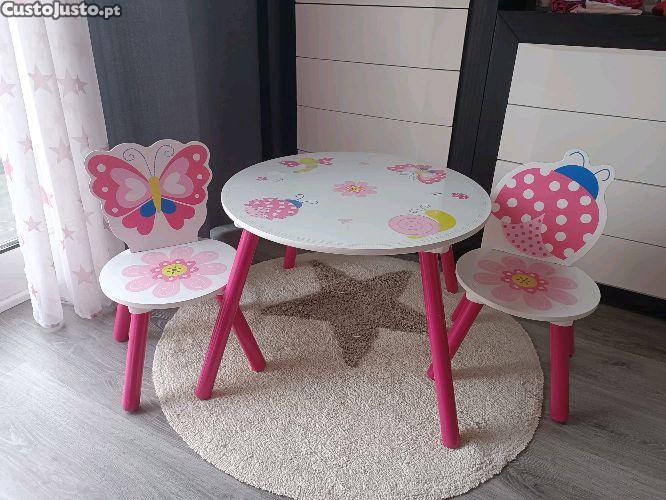 Conjunto de mesa e duas cadeiras de criança em madeira