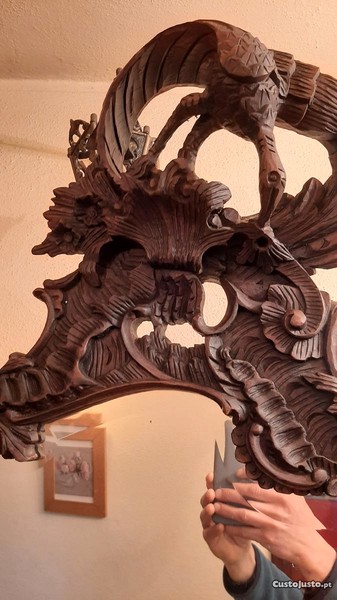 Credência antiga, com espelho muito bonita, em talha de madeira, muito trabalhada, com tampo em mármore em tons de cinzento