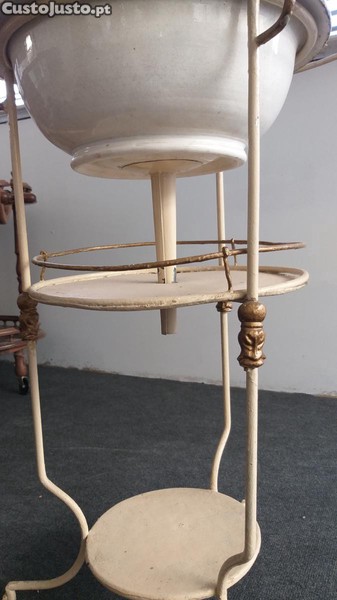 lavatório antigo em metal com bacia em cerâmica original