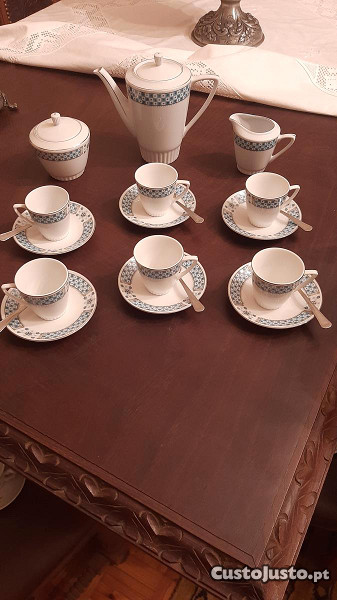 Conjunto de café com 6 chávenas e pires,leiteira ,açucareiro e bule. Nunca foi usado.