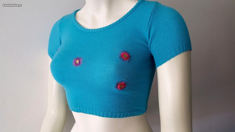 Preço: 10 €Crop Top em Malha de Linha com Bordados made in Italy