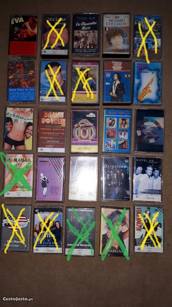 cassetes antigas várias o preço pode ir dos 3 a 5 euros... envio para todo o país se conhece a plataforma VINTED...também os tenho lá anunciados e até ao final deste mês não paga os portes de envio. É gratuito