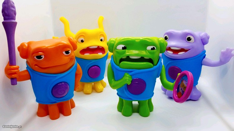Conjunto de 4 Figuras de Ação: Oh Heróico, Oh Surpreso, Oh Nervoso e Oh Dançante, personagens de "Home - A minha Casa", brindes McDonald's de 2015 para coleção.