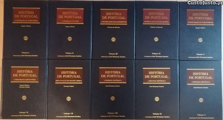 Vol. 1 - A Formação do Território Da Lusitânia ao alargamento do País, por Ângelo Ribeiro. Vol. 2 - A Afirmação do País Da Conquista do Algarve à Regência de Leonor Teles. Ângelo Ribeiro. Vol. 3 - A Epopeia dos Descobrimentos A Dinastia de Avise e a Expansão Ultramarina, por Newton de Macedo. Vol. 4 - Glória e Declínio do Império De D. Manuel I ao Domínio dos Filipes, por Newton de Macedo. Vol. 5 - A Restauração da Independência O início da Dinastia de Bragança, por Ângelo Ribeiro. Vol. 6 - A Monarquia Da Afirmação do Poder às Invasões Francesas, por Ângelo Ribeiro e Hernâni Cidade. Vol. 7 - Implantação do Regime Liberal Da Revolução de 1820 à Queda da Monarquia, por Hernâni Cidade. Vol. 8 - A Primeira República Do 5 de Outubro à Crise Partidária, por José Hermano Saraiva. Vol. 9 - A Segunda República De António Salazar ao Marcelismo, por José Hermano Saraiva. Vol- 10 - A Terceira República Do 25 de Abril aos Nossos Dias, por José Hermano Saraiva.