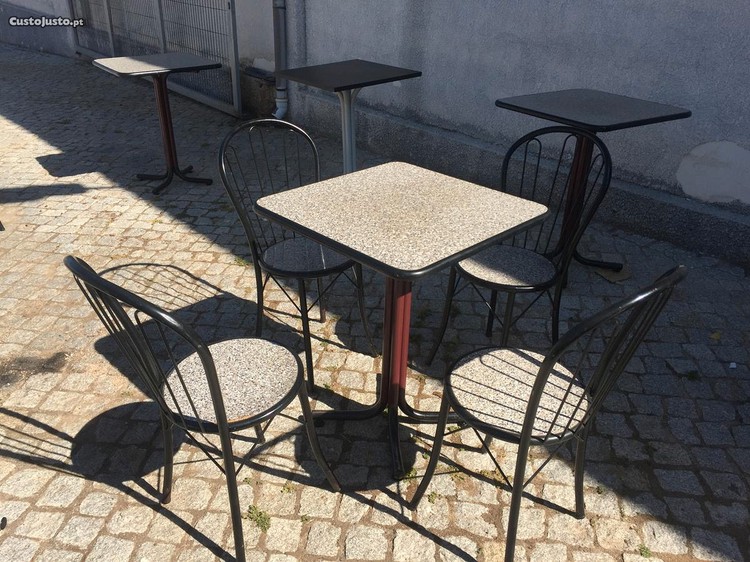 Vários conjuntos de mesas e cadeiras, conforme se pode observar nas imagens.