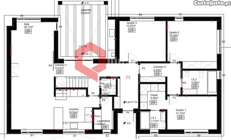 Área de Implantação de 254,50m2 e área bruta de construção de 330,78m2