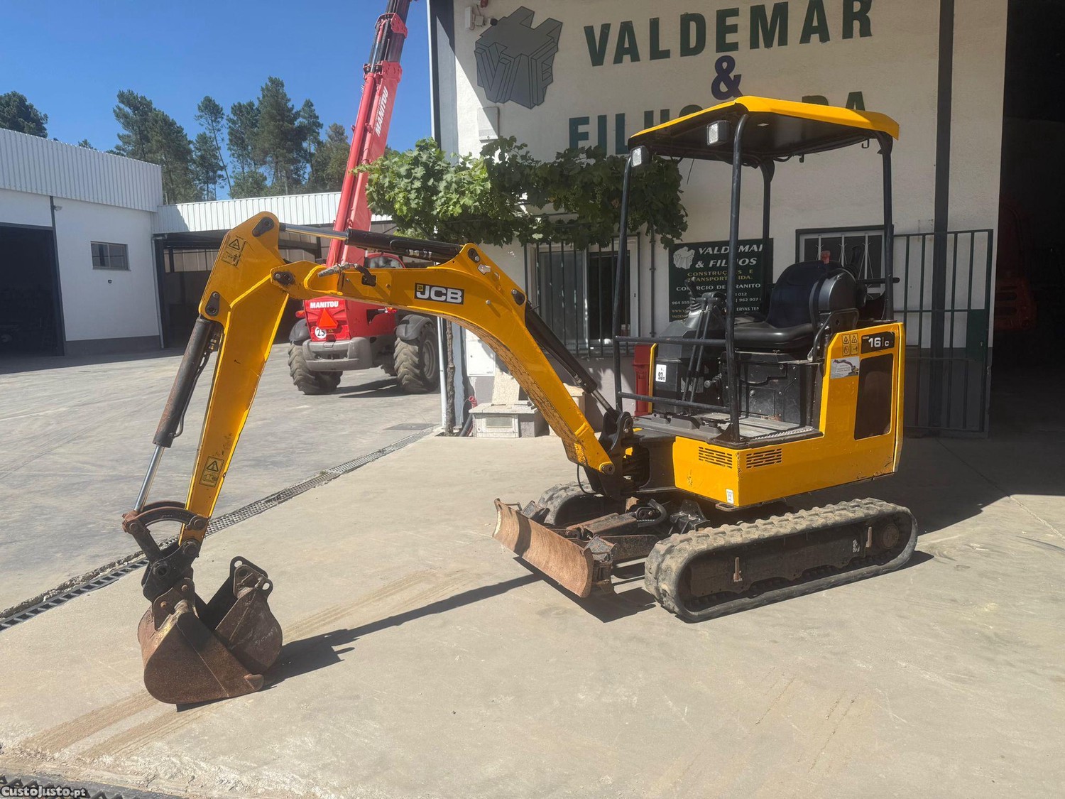 Mini escavadora de marca JCB, modelo 16C-1, do ano 2021, com 1181h, equipada com linha de martelo e 2 baldes. Rastos de apertar e alargar. Muito bom estado.
