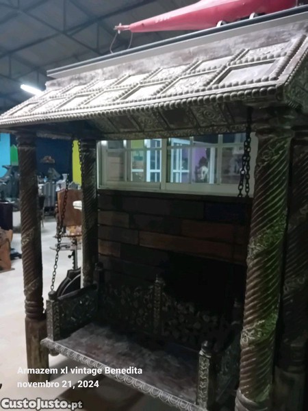 Um baloico em madeira e ferro nos pes. Esta em bom estado