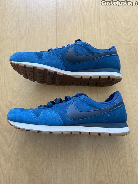 Vendo sapatilhas Nike, tamanho 46 (que equivale a calçar 45), azuis (modelo intemporal). Praticamente novas, em excelente estado de conservação, com 1 utilização. Motivo de venda: tamanho errado, sem possibilidade de troca/devolução. Valor de venda 38 eur (entrego em mão nas zonas de Marinha Grande/Leiria, senão acresce portes de envio, caso não recolha pessoalmente).