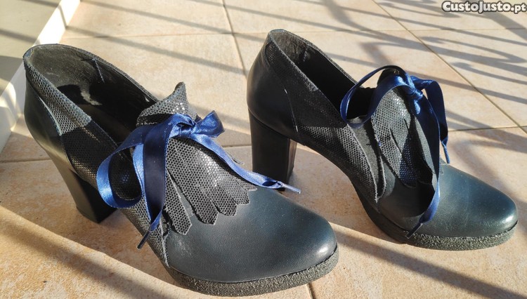 Sapatos para senhora, salto alto, cor azul escuro, com fita azul, número 37.