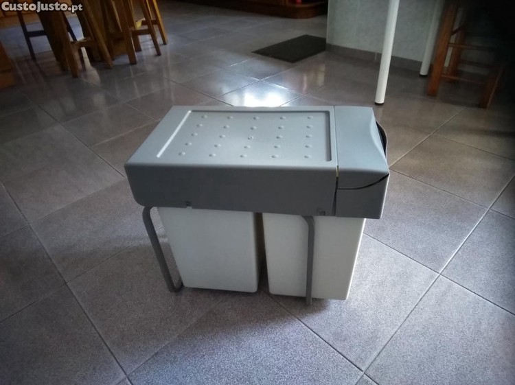 Recipiente para reciclagem e classificação de resíduos domésticos para montagem dentro de móveis de cozinha.