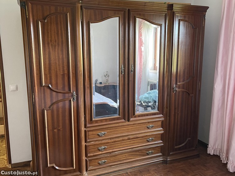 Preço: 450 €Conjunto quarto cama, roupeiro, cómoda e 2 mesas cabeceira