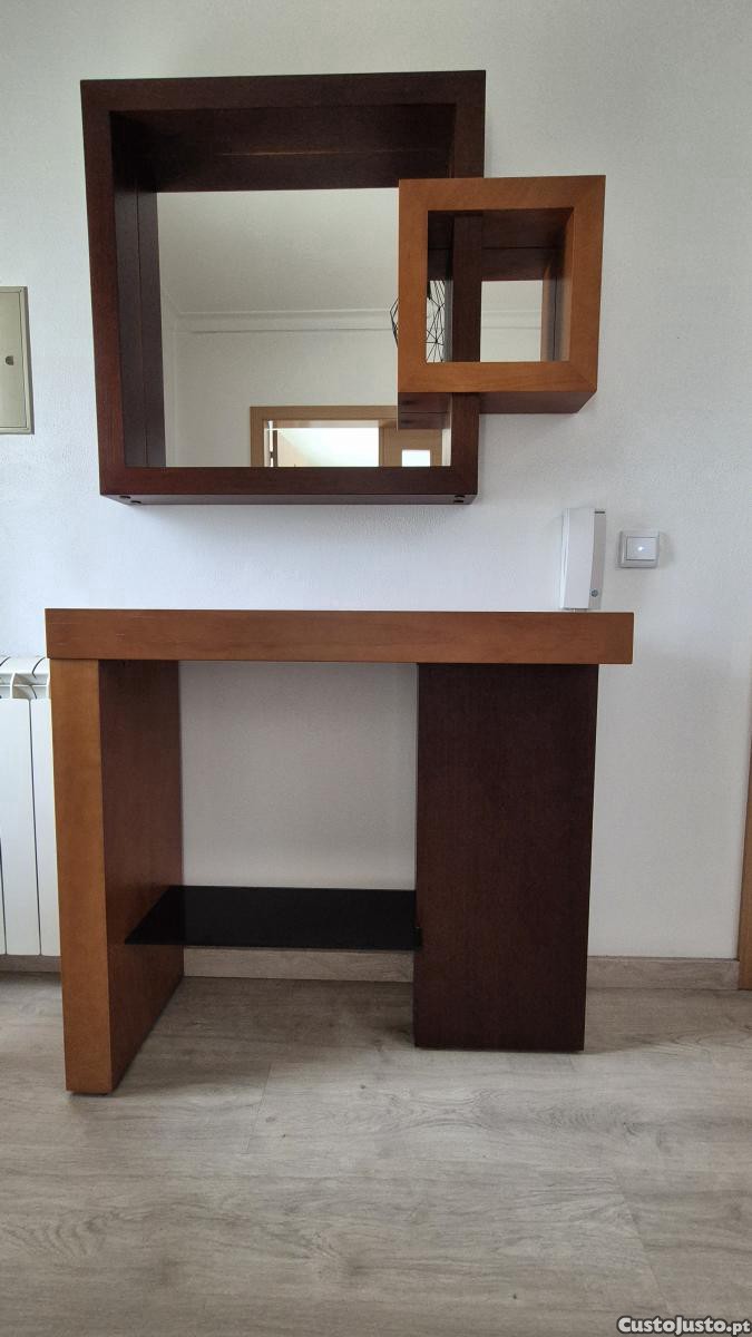 Consola mais espelho em cerejeira e wengue, em bom estado.