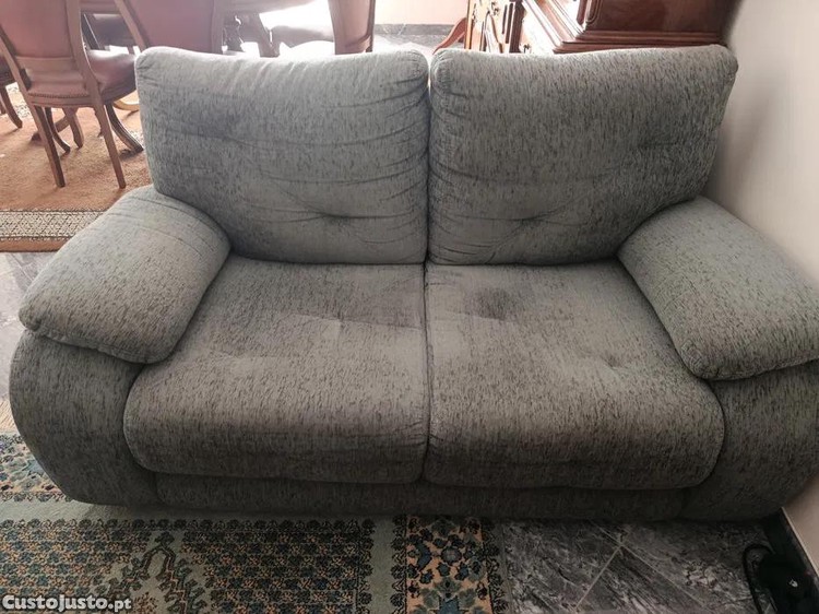 Sofás de sala de estar azuis usados em tecido, em ótimo estado de conservação, sem arranhões nem qualquer outro desgaste. Peças confortáveis e com design clássico que se adaptam bem a qualquer decoração. Disponíveis para venda por 170 euros cada um, negociáveis.