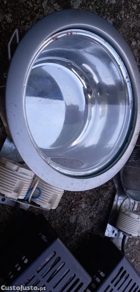 Vendo 2 conjuntos de focos de iluminação para lâmpadas 2x13w para encastrar. Funcionamento impecável. Sem lâmpadas. Inclui suporte de lâmpadas duplo com respectivo balastro e vidro temperado. Posso enviar.