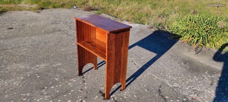Mesa de apoio de madeira natural de carvalho maciça com 75 cm de comprimento, 34 cm de largura e 90 cm de altura. Não envio, não respondo a sms's, por favor ligue ou responda ao anuncio.
