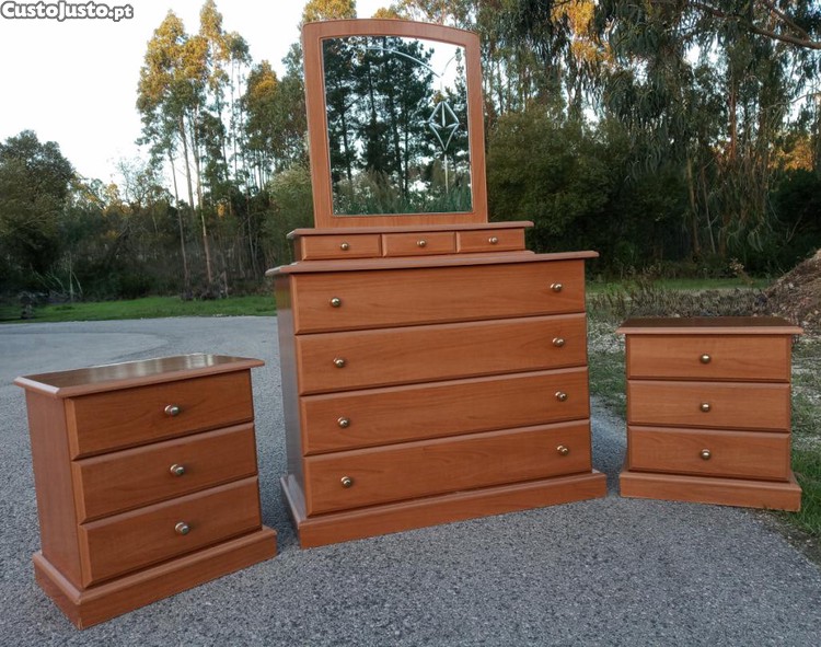 Disponíveis 2 Mesinhas de Cabeceira de 3 Gavetas Cada, Folheadas de Pinho;