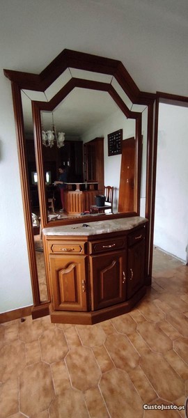 Vendo móvel aparador ou móvel de entrada tampo em pedra brecha santo Antonio em ângulo e com espelhos laterais e o central biselado.