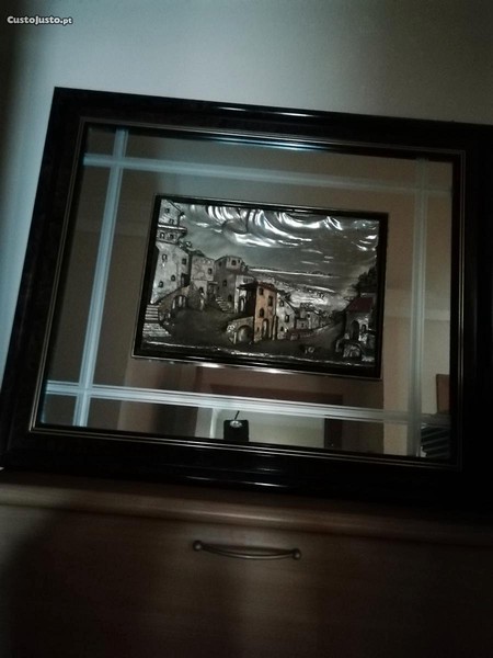 Tenho vários quadros,em têxteis, em espelhos, pintados, em louça, em estanho para vender porque não tenho espaço. Preciso vender.O preço varia conforme a peça.