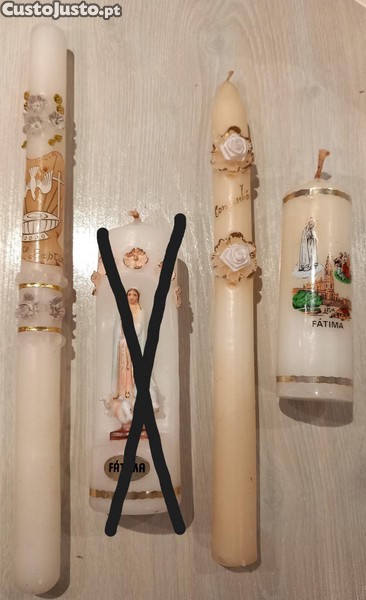 Velas de cera trabalhada com decoração saliente, quase perfeitas.