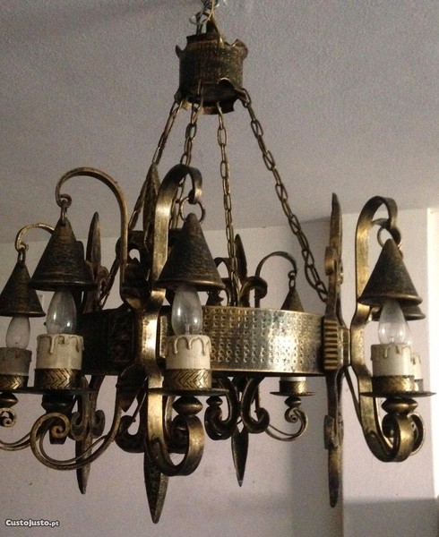 Candeeiro rústico de ferro trabalhado, suporte para lâmpadas em forma de vela.