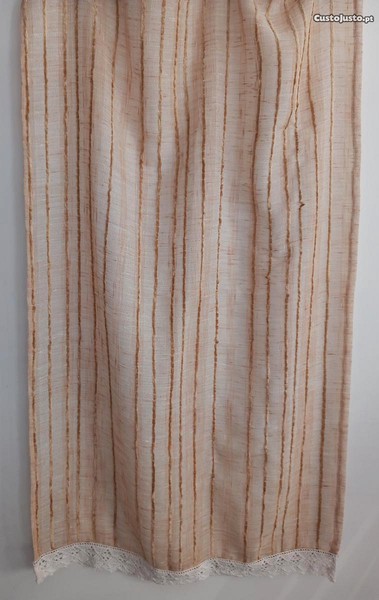 Cortina de tecido creme com "veios" verticais de fio de veludo tom "mel".