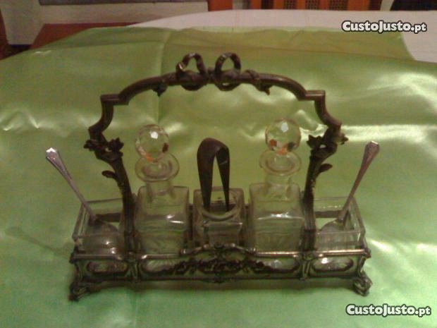 Preço: 200 €Galheteiro em metal e vidro trabalhado