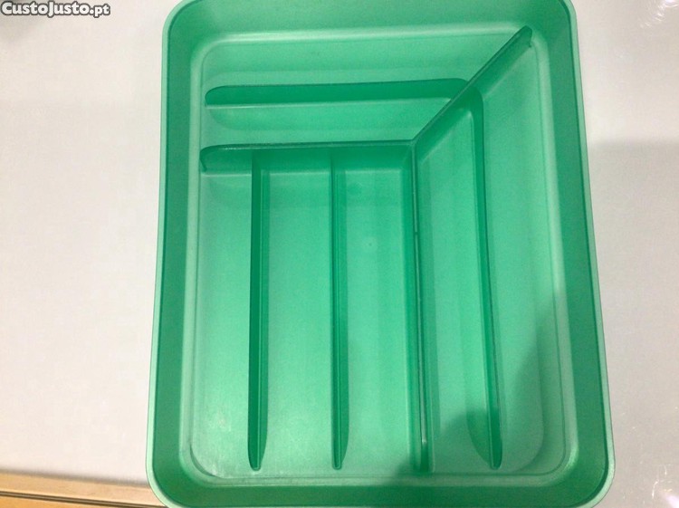 Tabuleiro em plástico verde, para talheres.Em óptimo estado.