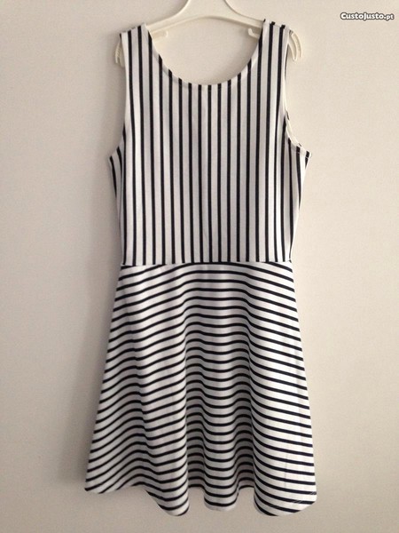 Vestido para criança 10-12 anos , branco com riscas pretas, manga cava.