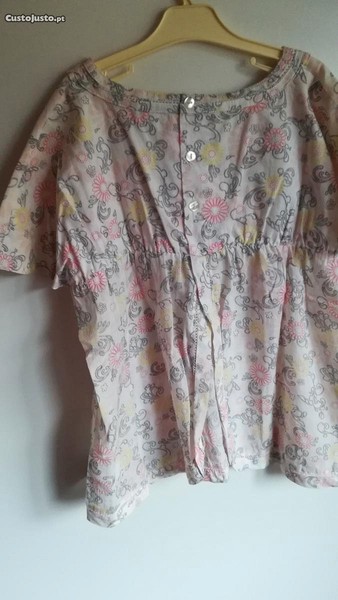 Vendo blusa estampada, como nova. Tom rosa claro com desenhos. Abertura na parte final das costas.