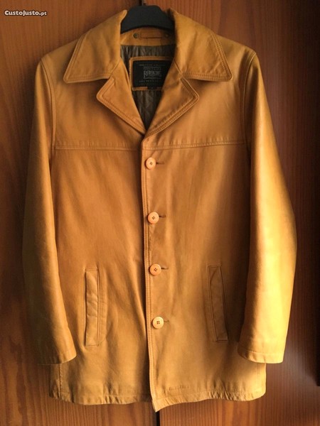 Casaco de cabedal em amarelo torrado, estilo vintage, da Redskins. Com forro interior.