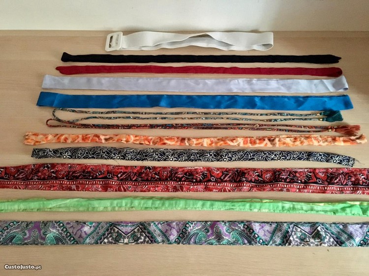 12 cintos em tecido para senhora, com vários tamanhos e padrões, em excelente estado.