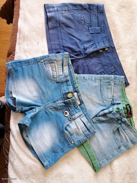 Lote de 3 calções 2 em ganga e 1 em tecido. Vestem tamanho 34/36.
