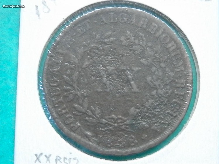 - Moeda de D. Maria II: XX Réis 1848 cobre, por 7,00 euros (preço fixo-moeda das fotos).