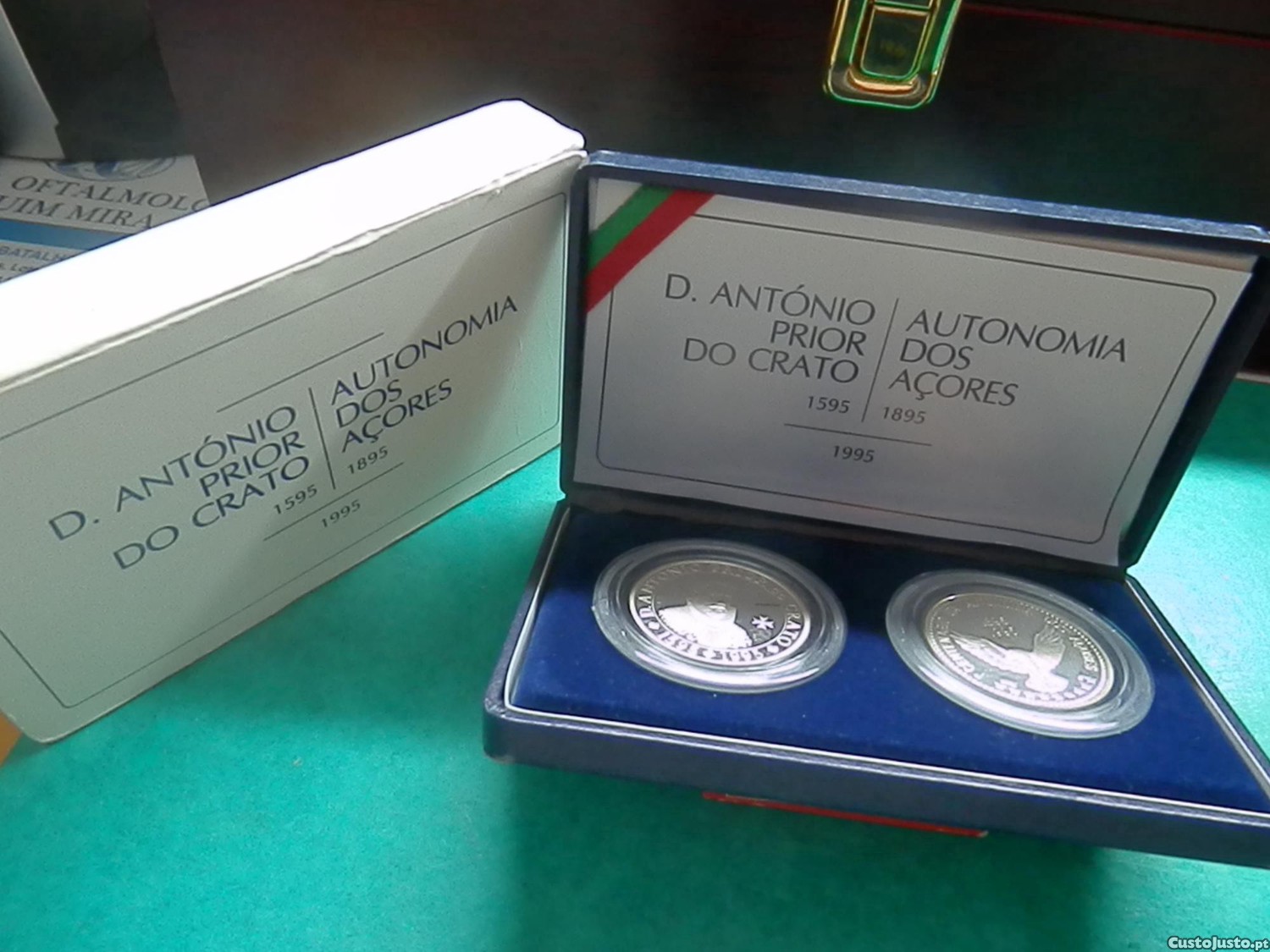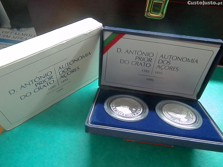 - PROOF: Estojo completo com duplo 100$00 1995 prata proof (D. António Prior do Crato + Centenário da Autonomia dos Açores) certificado e cinta. Valor final de 50,00 euros e envio em correio registado de minha conta. Preço fixo - material constante das fotos.