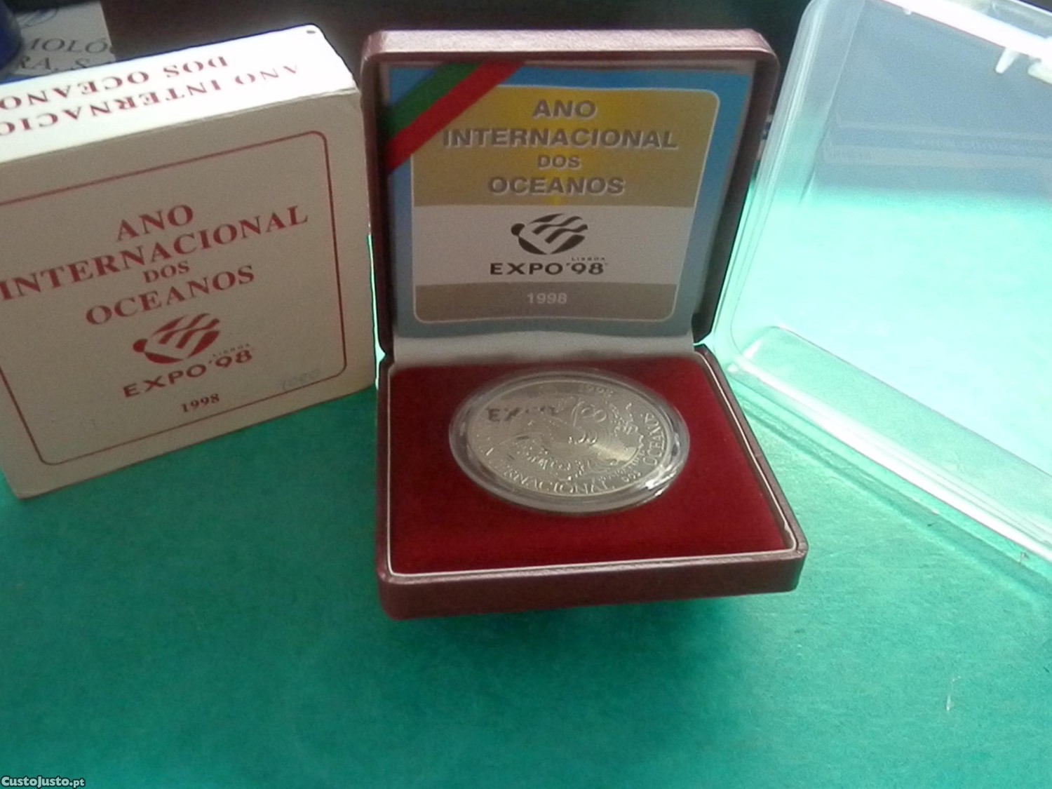 - PRROF: Estojo completo com moeda de 1.000$00 prata proof, certificado e cinta, comemorativa do "Ano Internacional dos Oceanos". Valor final de 30,00 euros e envio em correio registado de minha conta e oferta da caixa de plástico transparente que acondiciona tudo. Preço fixo - material constante das fotos.