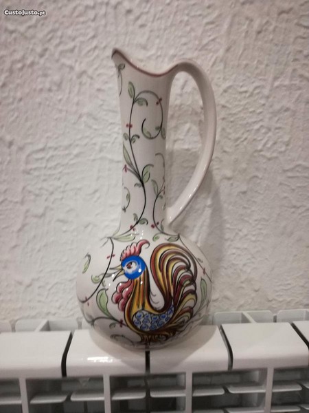 Ânfora em faiança de Àgueda, pintada à mão com decoração policromada representando um galo e motivos vegetalistas. Inscrição na base:- Modelo n. 40 Em perfeito estado de conservação, sem quaisquer desgastes. Altura:-25,2 cms Pagamento antecipado por transferência bancária. Portes por conta do comprador.