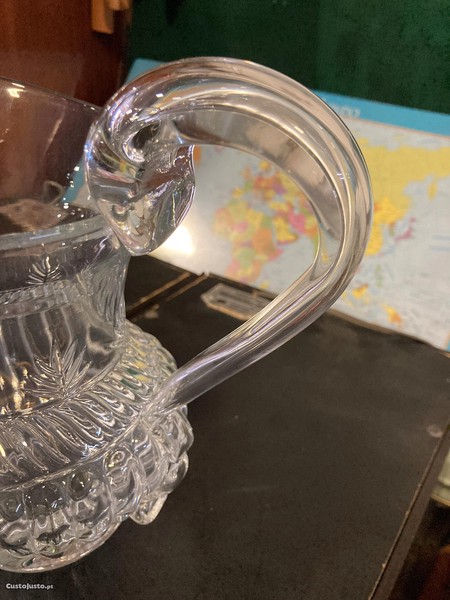 Antigo e bonito jarro em vidro da Marinha Grande moldado e com pega feita mão