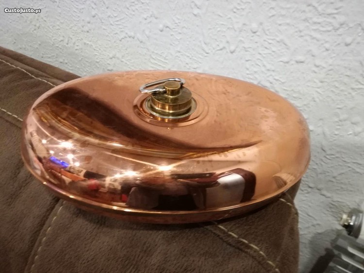Botija de cobre p/ aquecer os pés c/ tampa roscada em excelente estado de conservação, aparentemente sem uso, de fabrico suiço da empresa, Stöckli, NESTAL.