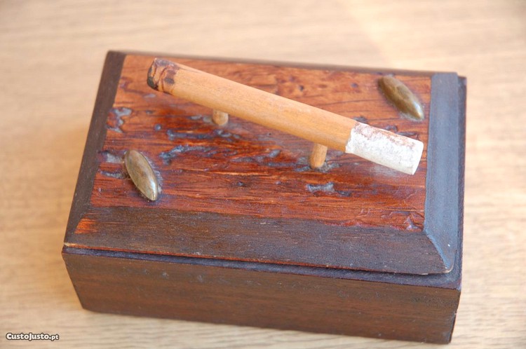 Linda caixa de madeira com cigarro em relevo por cima,com veludo no interior e por baixo.