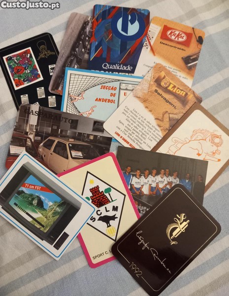 12 calendários publicitários, antigos, referentes aos anos de 1989 a 1993. Publicidade a : restaurante, chocolates, clubes desportivos, eletrodomésticos, cosmética, stand automóveis, bolachas e litografia.