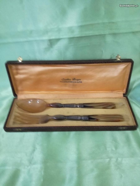 Preço: 20 €Conjunto Garfo e Colher em Osso e Liga Metálica