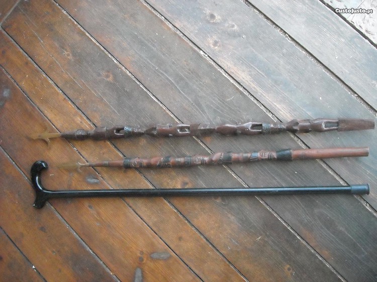 Duas lanças africanas do inicio do século passado em madeira exotica trabalhada. Originarias de Angola