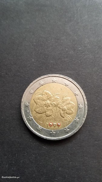 Moeda de 2 euros da Finlândia 1999 com defeito, excesso de metal nos números 9 da data, posso aceitar trocas