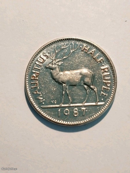 Moeda de 1/2 Rupee 1987 das Ilhas Maurícias.